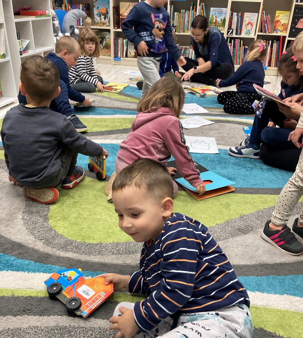 Książki z dźwiękiem, z latarką, świecące,z uszami, na kółkach, angażujące do nauki i zabawy były tematem 2 dniowych zajęć organizowanych przez Bibliotekę Publiczną w Postominie. Uczestnikami były przedszkolaki z 2 grup oddziałów przedszkolnych w Postominie.