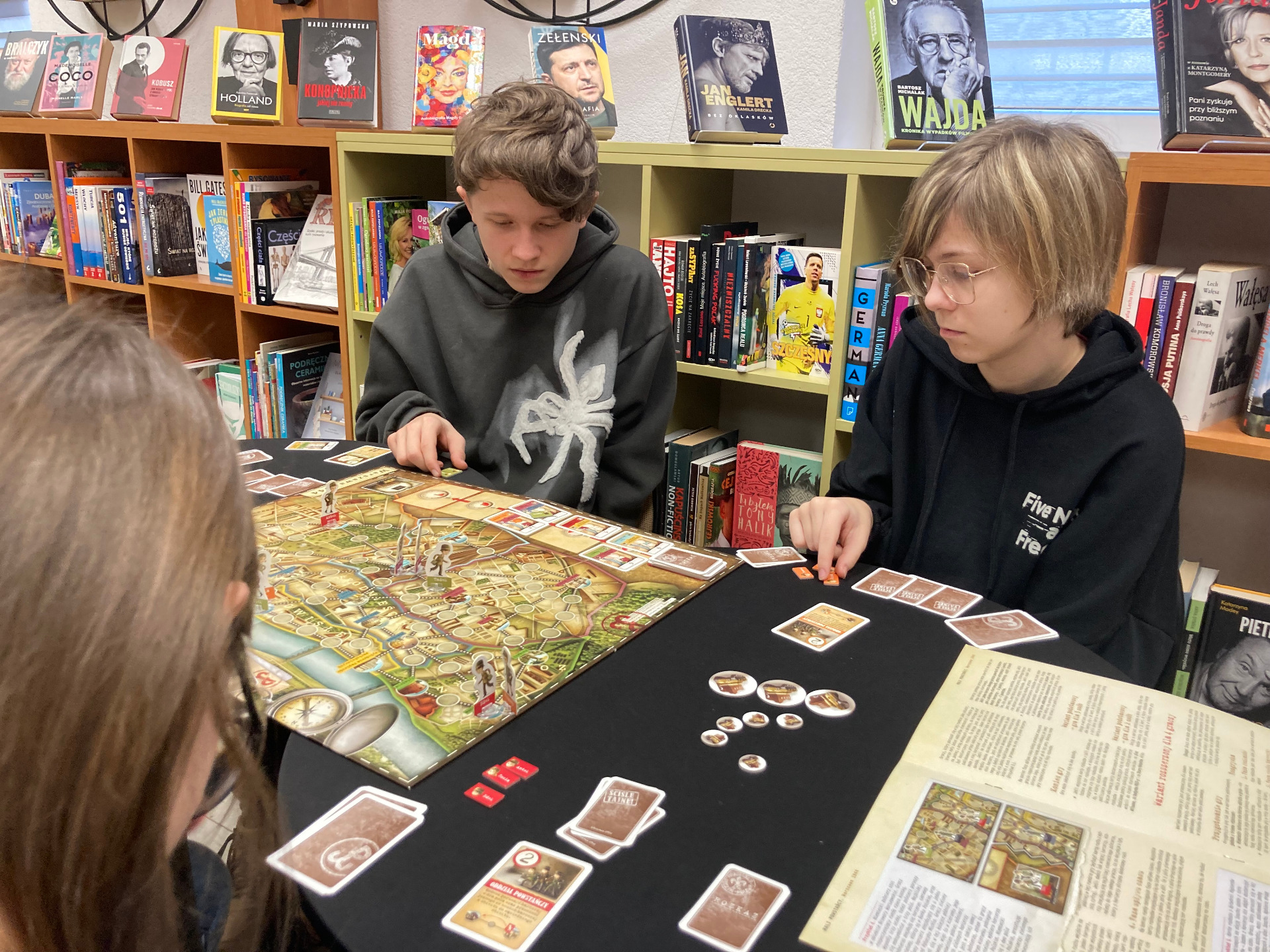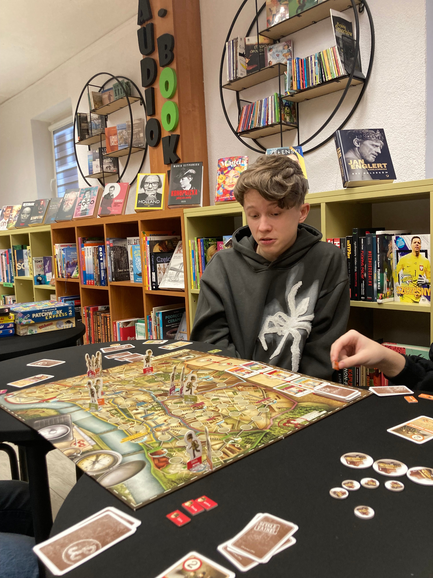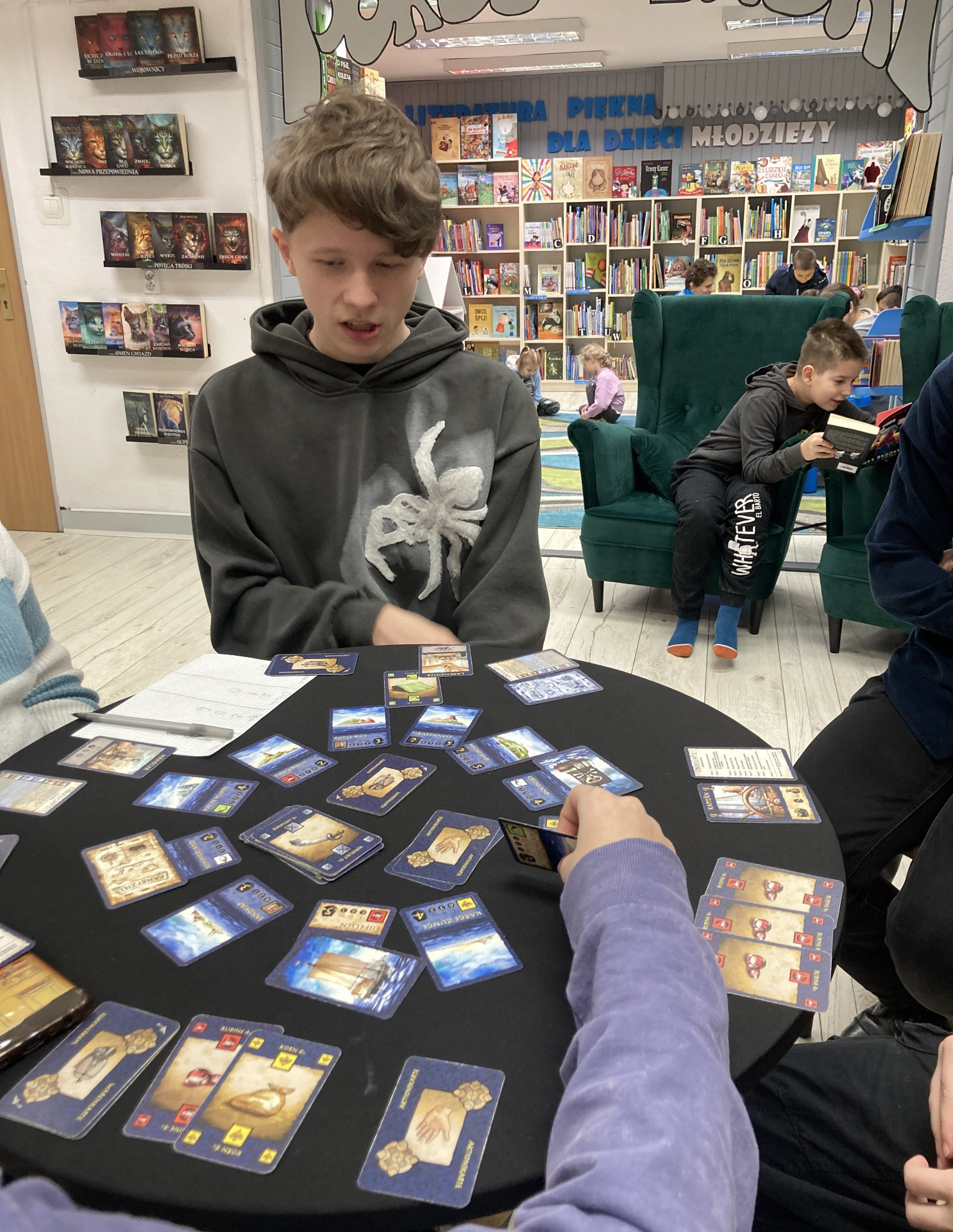 Zajęcia dla młodszych dzieci prowadziła pani Milena, która zadbała o to, by każda z grup miała świetną zabawę i poznała różnorodne gry. Natomiast młodzież miała okazję rywalizować pod okiem pasjonata gier planszowych pana Mikołaja Smolarza, który zarażał wszystkich swoją miłością do planszówek.😀