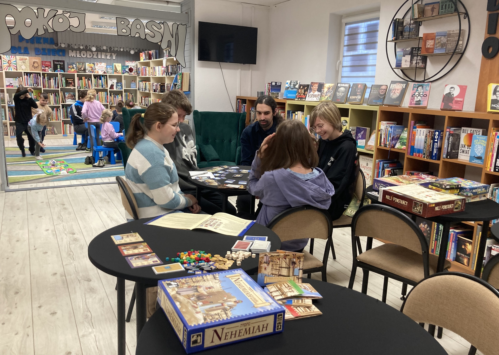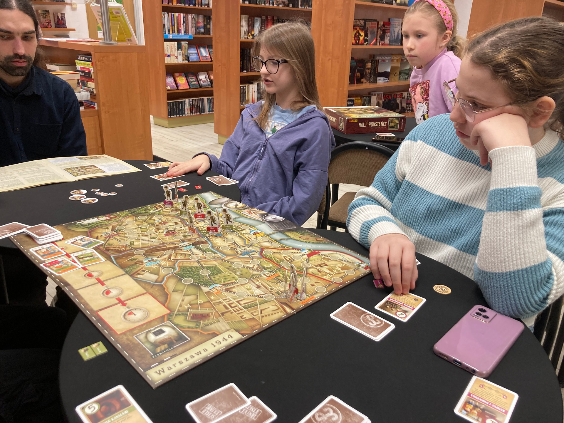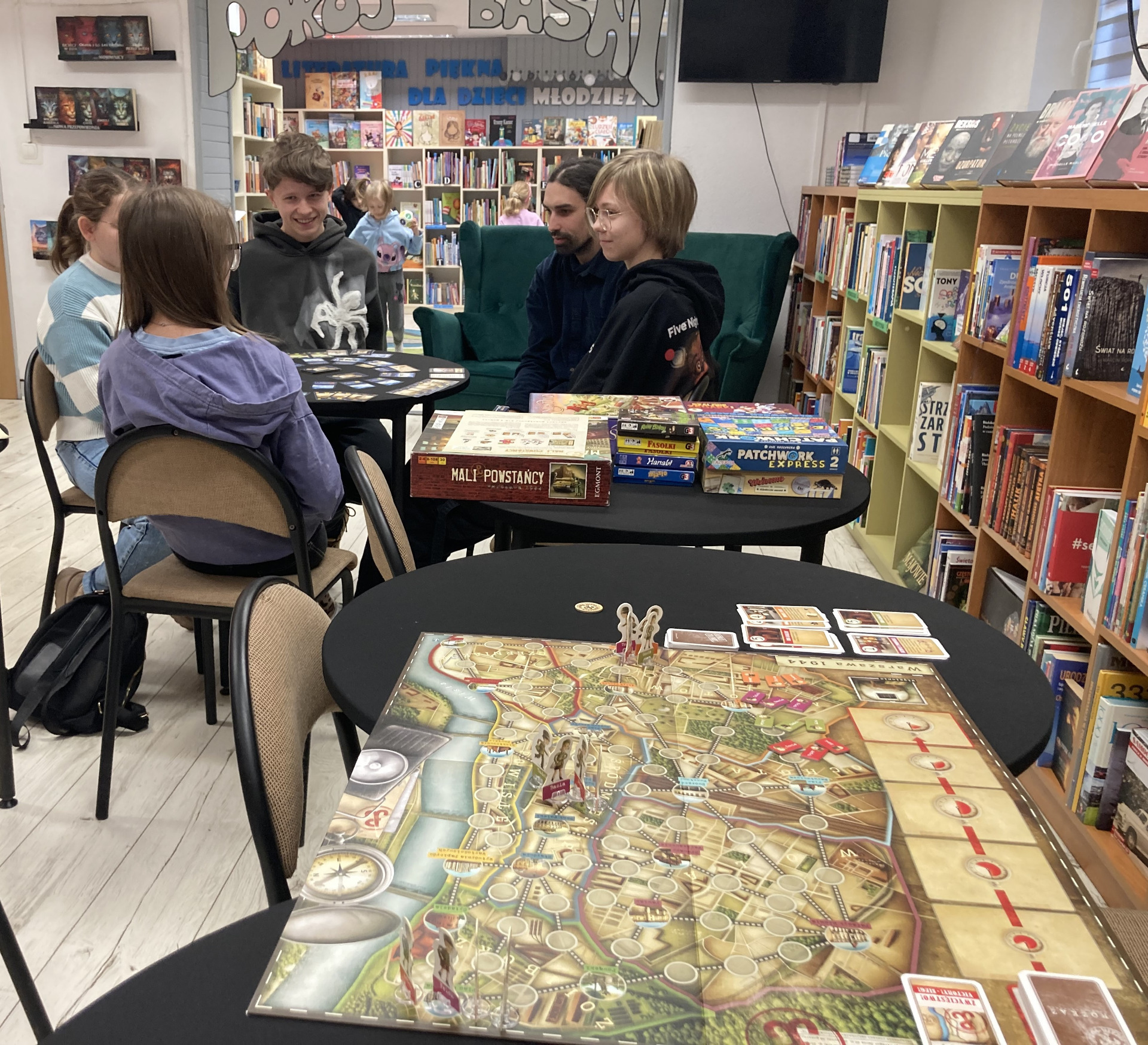 Zajęcia dla młodszych dzieci prowadziła pani Milena, która zadbała o to, by każda z grup miała świetną zabawę i poznała różnorodne gry. Natomiast młodzież miała okazję rywalizować pod okiem pasjonata gier planszowych pana Mikołaja Smolarza, który zarażał wszystkich swoją miłością do planszówek.😀