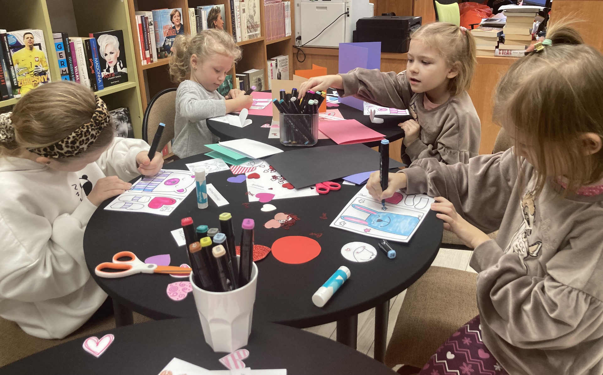 W naszej bibliotece odbyły się wyjątkowe warsztaty tworzenia walentynek, w których uczestniczyły dzieci w rożnym wieku. Uczestnicy, mieli okazję wyrazić swoją kreatywność, tworząc piękne, własnoręcznie robione kartki walentynkowe, pełne serduszek, kolorów i ciepłych słów dla bliskich.
