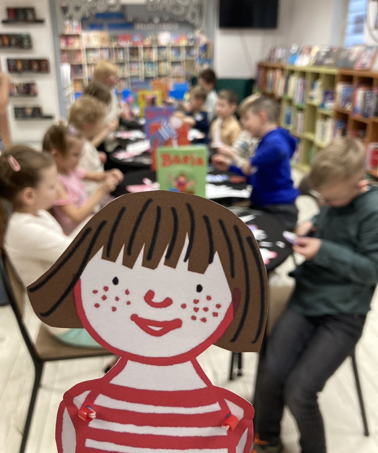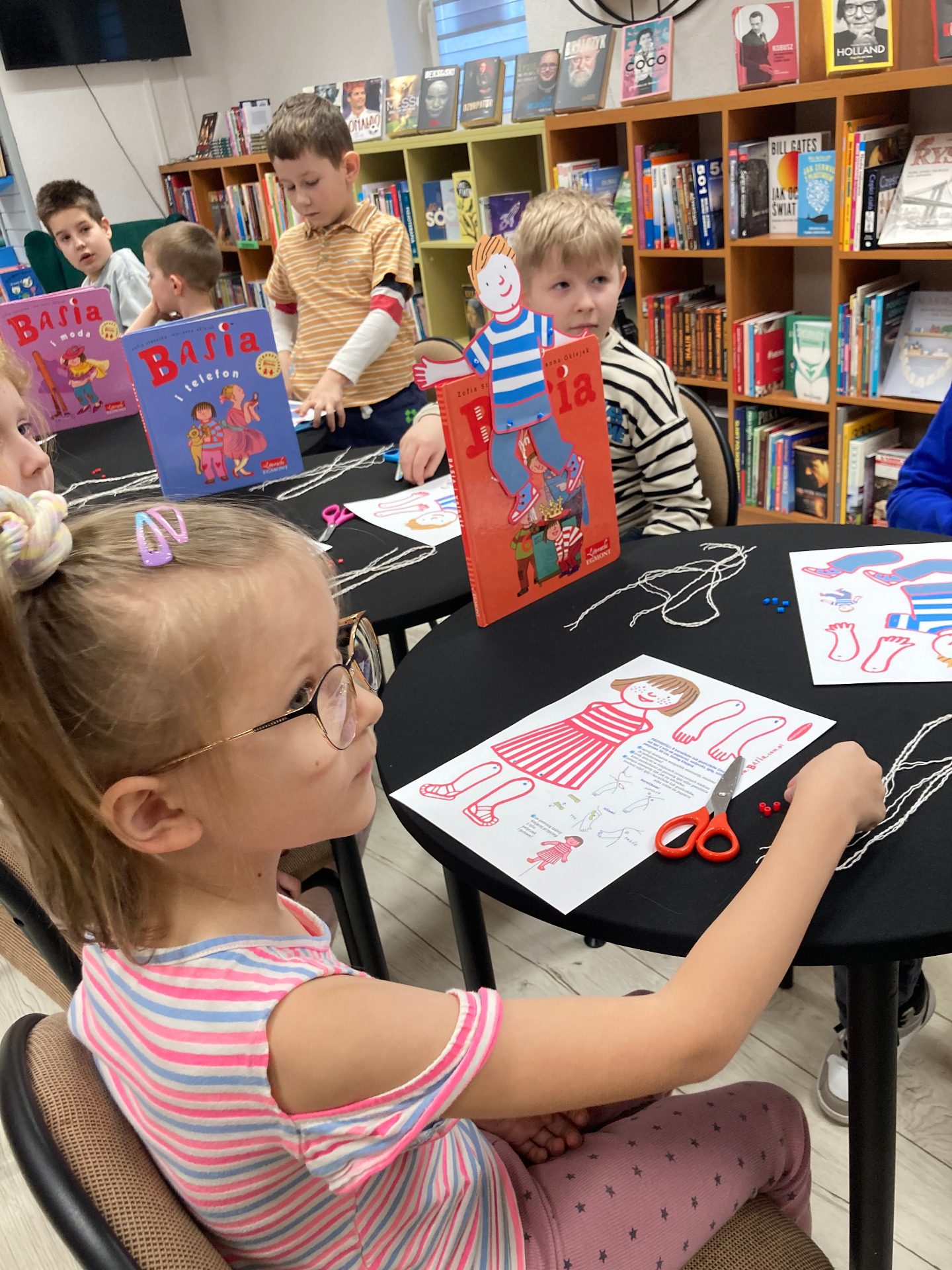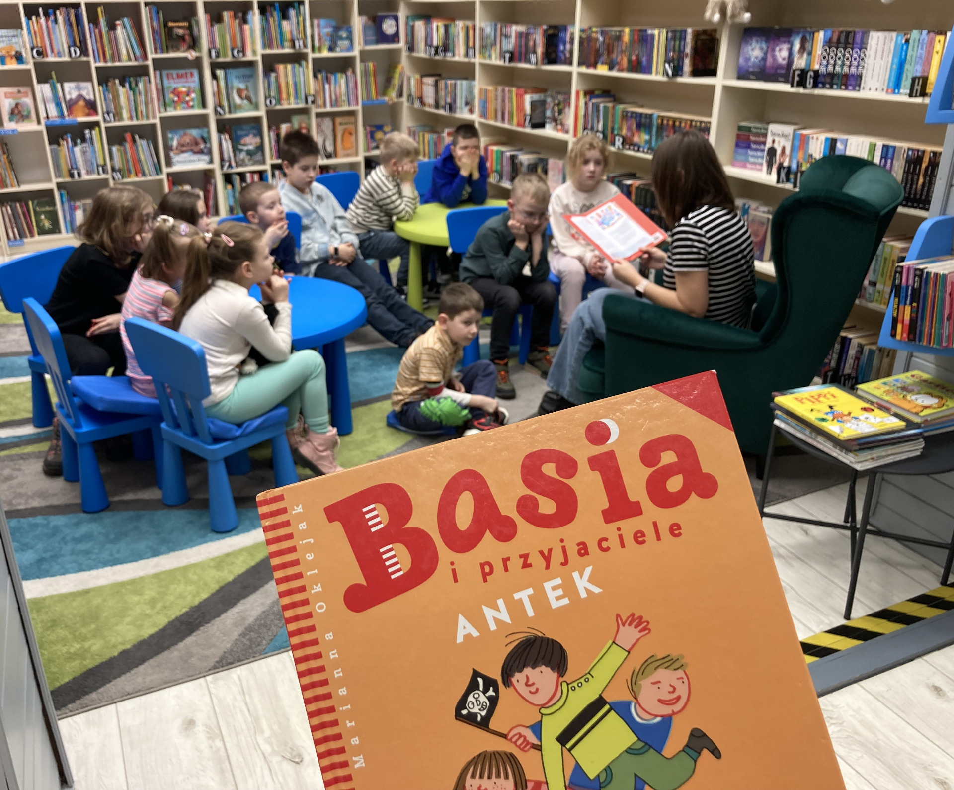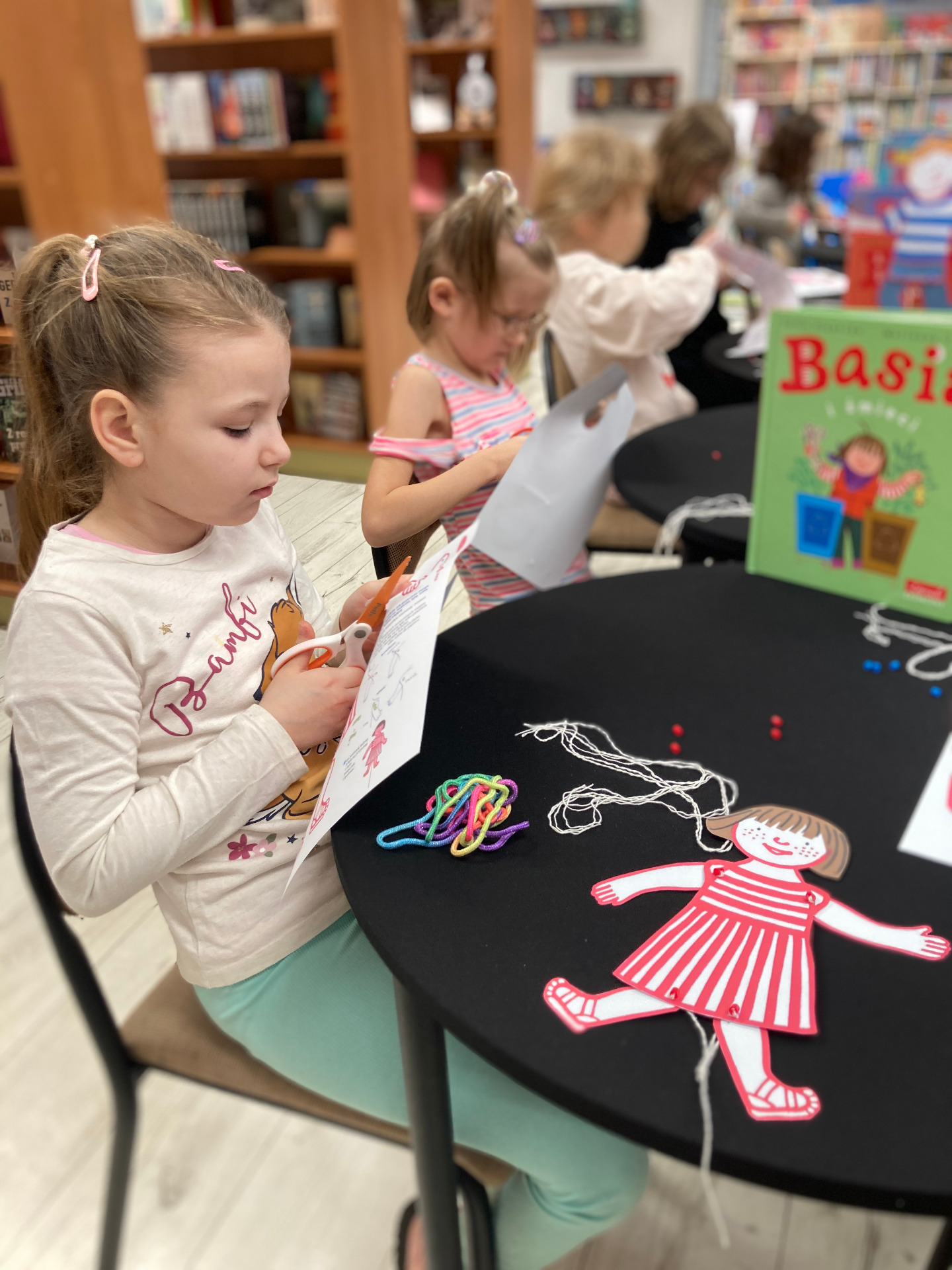 W piątkowe popołudnie odbyło się wyjątkowe spotkanie w Dyskusyjnym Klubie Książki dla Dzieci. W tym dniu uczestnicy klubu poznali tytułową bohaterkę serii książek Zofii Staneckiej – Basię. Dzieci przybyły na zajęcia ubrane w paski, jak ich tytułowa bohaterka. W trakcie spotkania dzieci miały okazję zapoznać się z różnymi przygodami Basi, która zmaga się z problemami bliskimi młodym czytelnikom: z rodzeństwem, pierwszymi przyjaźniami i codziennymi dylematami. Po dyskusji na temat książek o Basi, dzieci zaczęły kreatywną część spotkania – warsztaty tworzenia bohaterów interaktywnych. Z papieru i sznurka , stworzyły postacie Basi i jej brata Janka. Największą atrakcją warsztatów była możliwość ożywienia stworzonych postaci – za pomocą specjalnych mechanizmów, dzieci mogły poruszać rękami i nogami swoich papierowych bohaterów. Taki sposób tworzenia postaci sprawił, że każda Basia i Janek stały się nie tylko elementem zabawy, ale również pomocą w rozwijaniu wyobraźni i kreatywności dzieci.