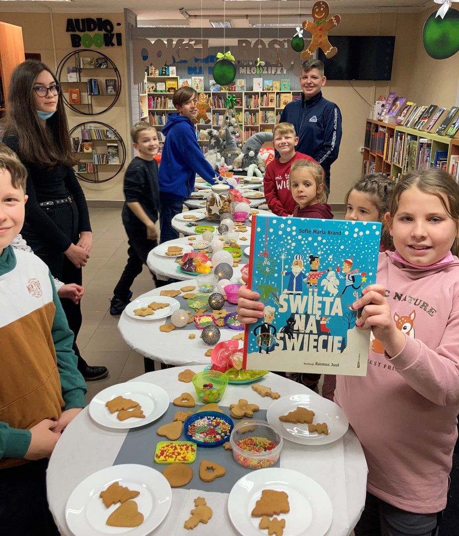 W grudniu w naszej Bibliotece odbyło się świąteczne spotkanie w Dyskusyjnym Klubie Książki dla Dzieci. Na zajęciach omawiano książkę „Święta na świecie” autorstwa Sofii Marii Brand. Bogato ilustrowana lektura, zawierająca mnóstwo ciekawostek dotyczących tradycji świąt w różnych częściach świata, stała się inspiracją do rozmów o świętach w naszych domach i polskich tradycjach.