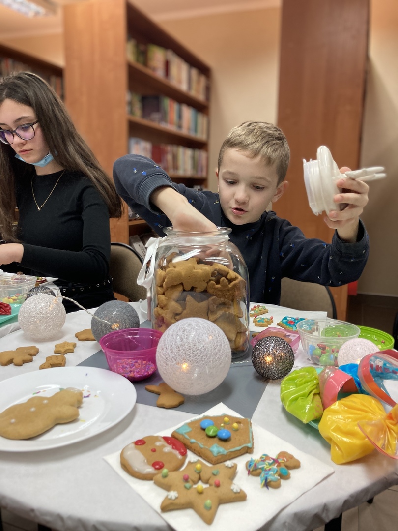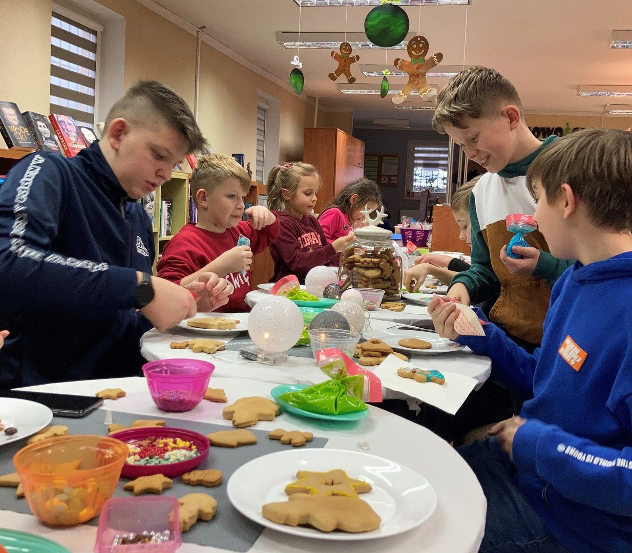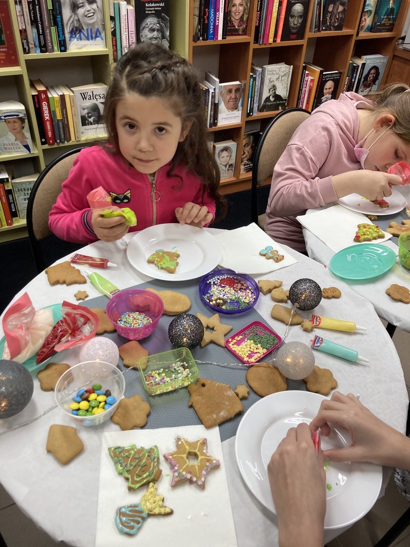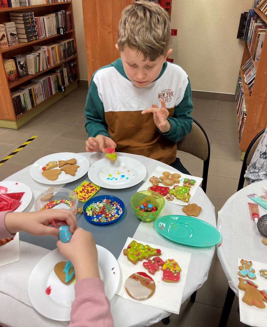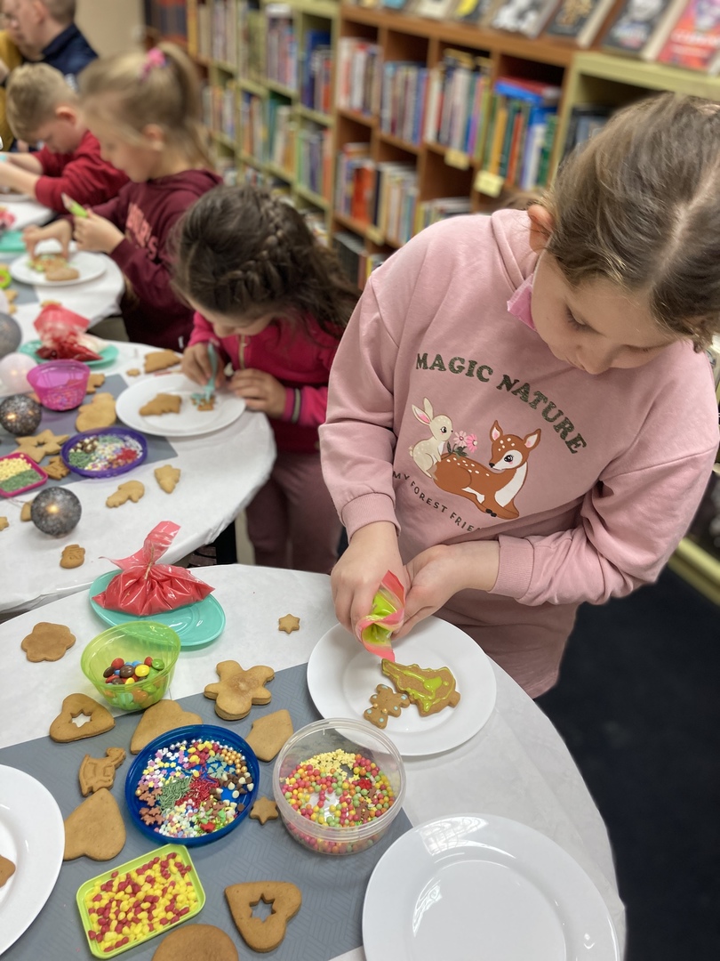 W drugiej części spotkania odbyły się warsztaty dekorowania pierników. Dzięki ogromnej wyobraźni i kreatywności Klubowiczów powstały niezwykłe dzieła piernikowe. W bibliotece unosił się zapach cynamonu, goździków, kardamonu, było bardzo słodko i smacznie…