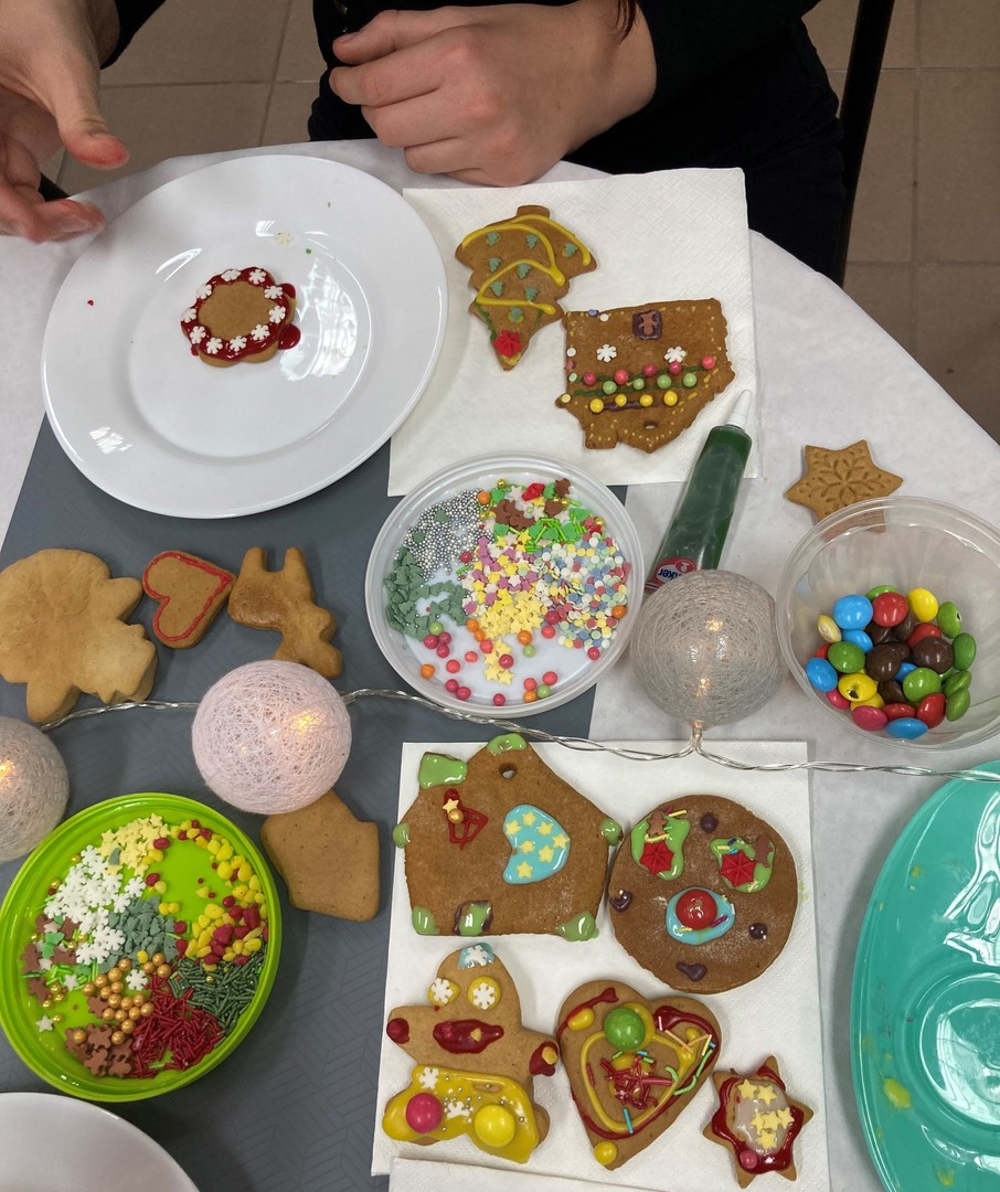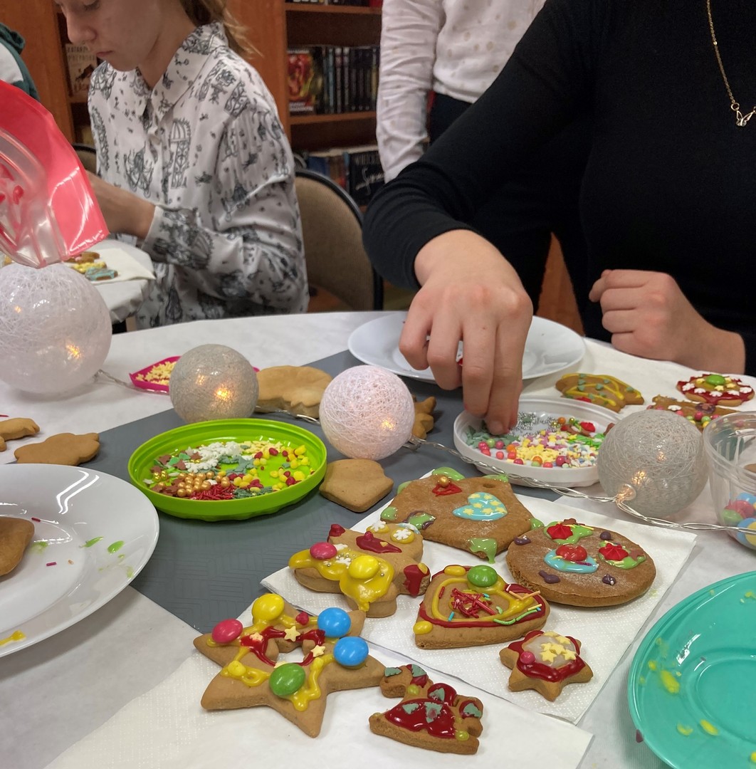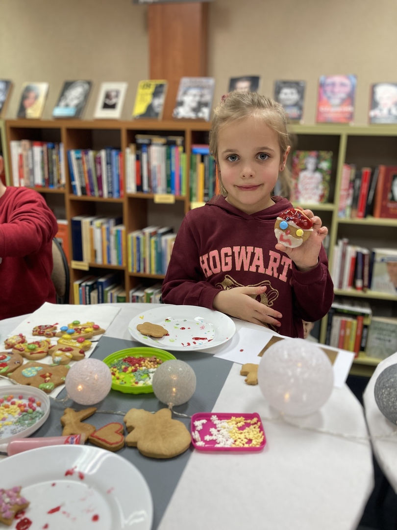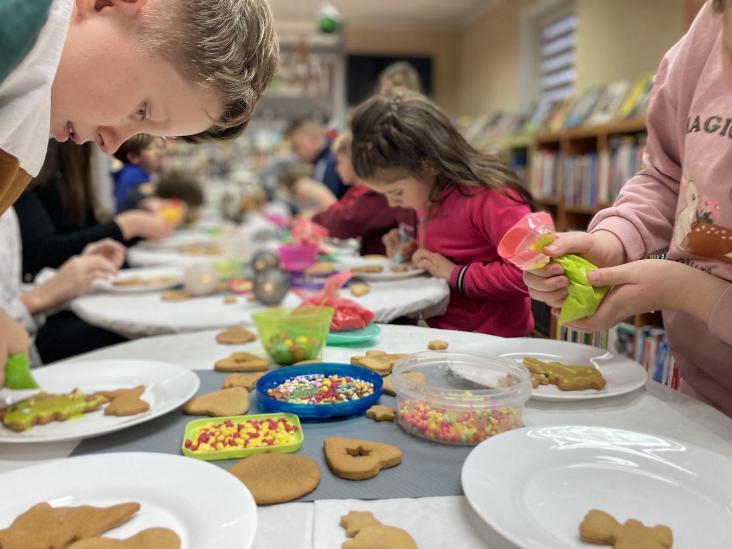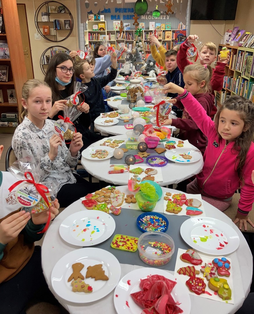 W drugiej części spotkania odbyły się warsztaty dekorowania pierników. Dzięki ogromnej wyobraźni i kreatywności Klubowiczów powstały niezwykłe dzieła piernikowe. W bibliotece unosił się zapach cynamonu, goździków, kardamonu, było bardzo słodko i smacznie…