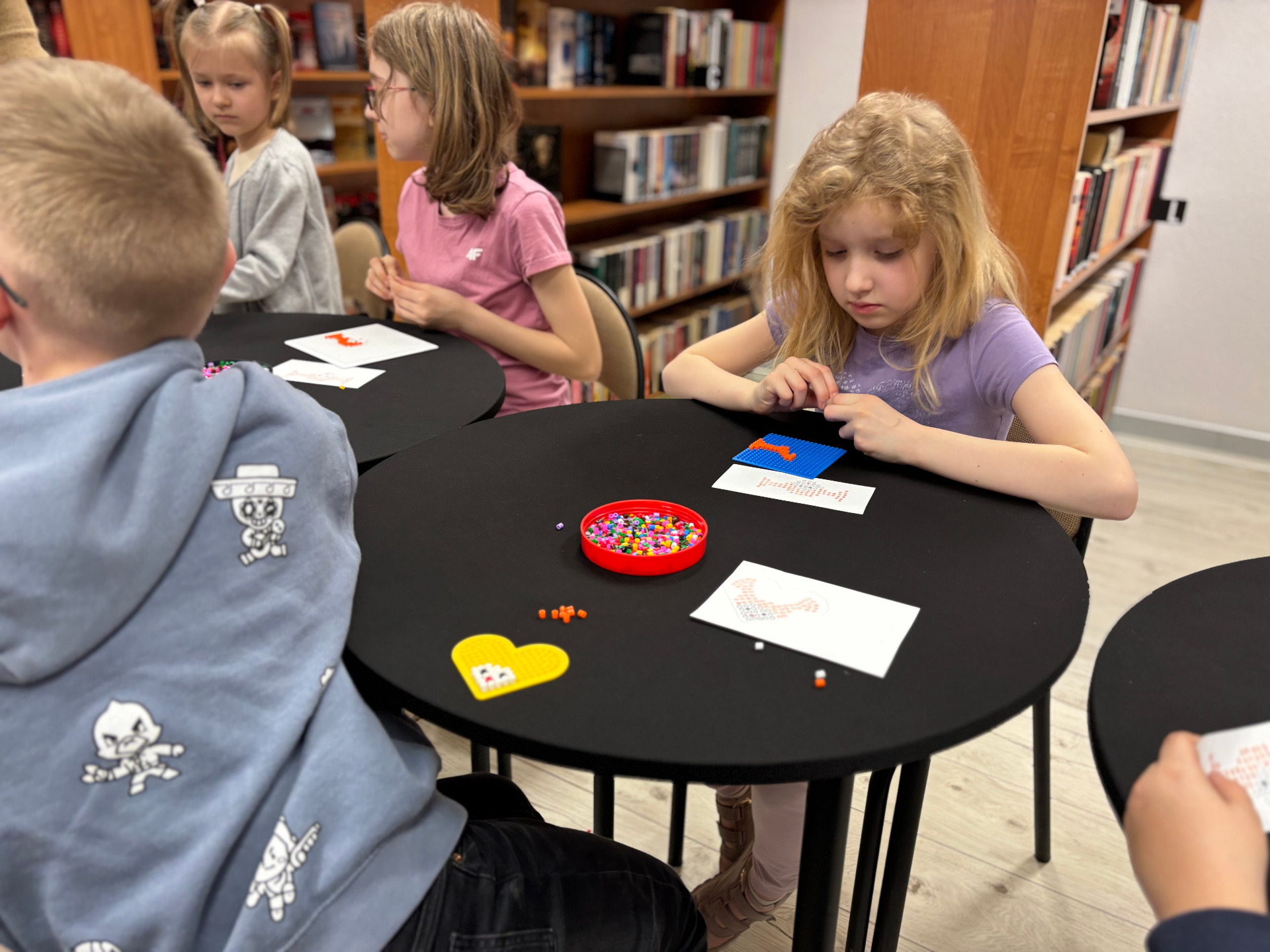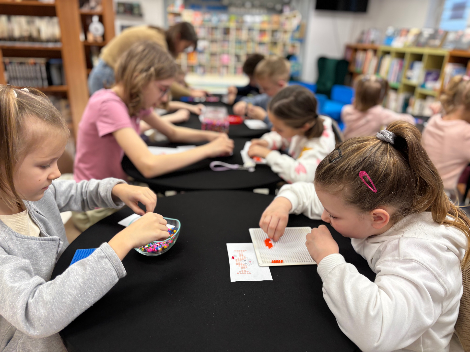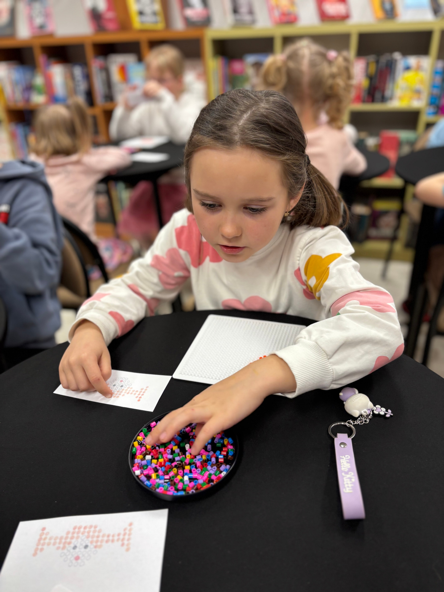 Po części dyskusyjnej przyszedł czas na zabawę. Klubowicze mieli okazję wykazać się swoimi zdolnościami manualnymi, tworząc postać Pippi z koralików prasowanek. Z wielkim zaangażowaniem powstawały kolorowe figurki, które później każdy mógł zabrać na pamiątkę do domu.😀