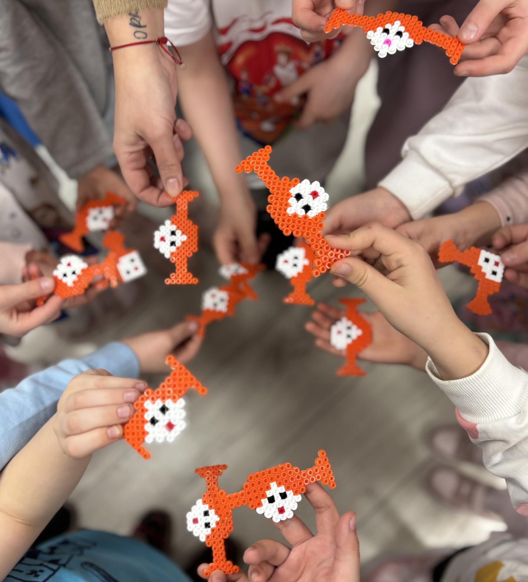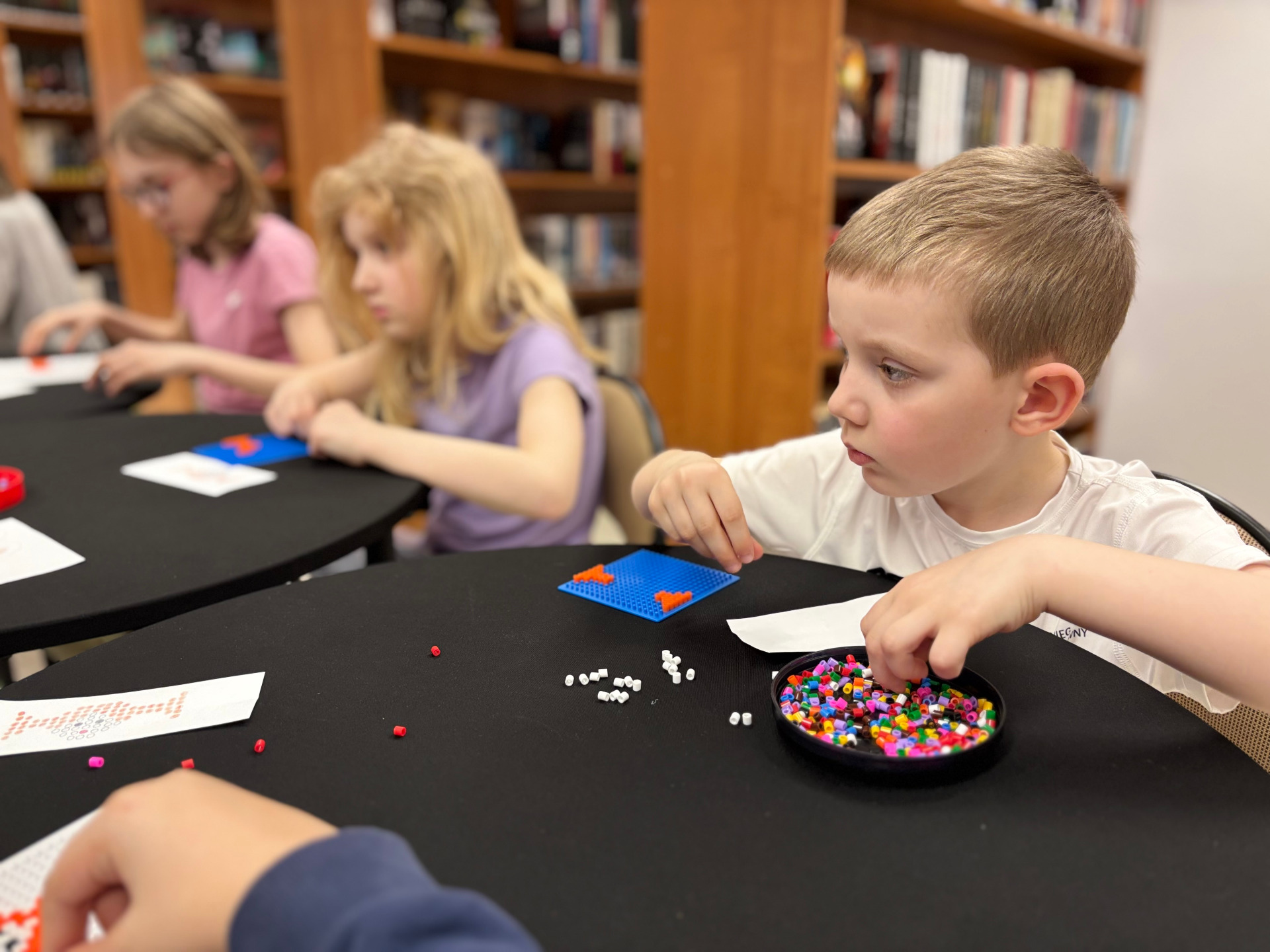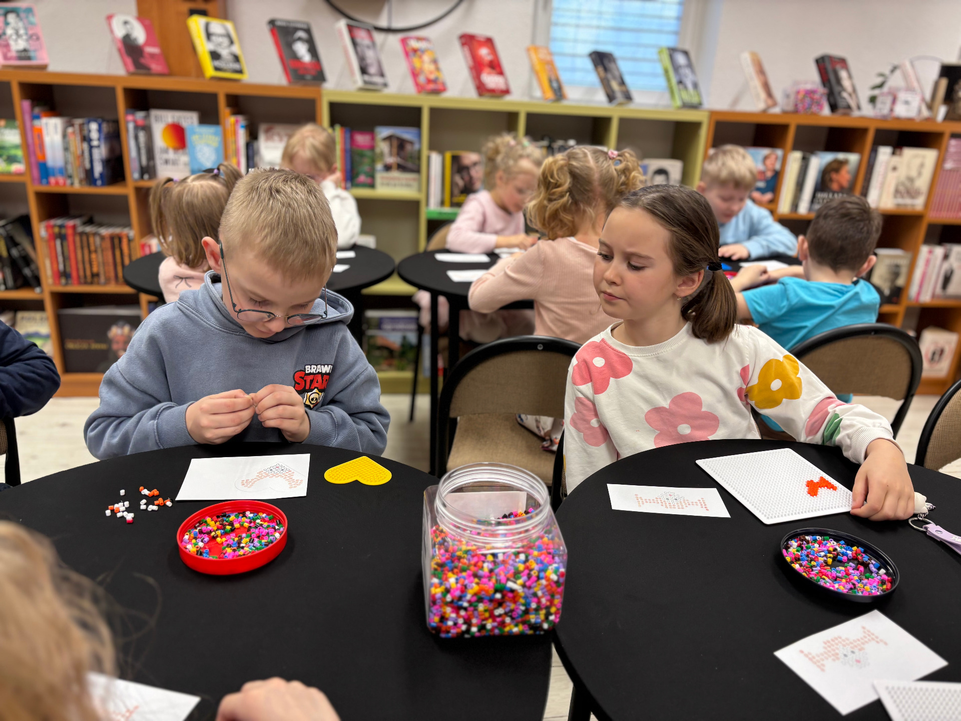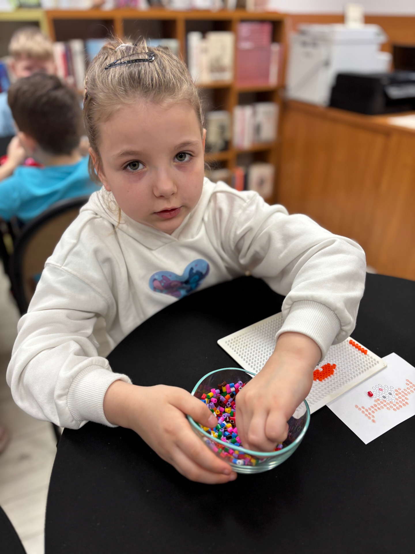 Po części dyskusyjnej przyszedł czas na zabawę. Klubowicze mieli okazję wykazać się swoimi zdolnościami manualnymi, tworząc postać Pippi z koralików prasowanek. Z wielkim zaangażowaniem powstawały kolorowe figurki, które później każdy mógł zabrać na pamiątkę do domu.😀
