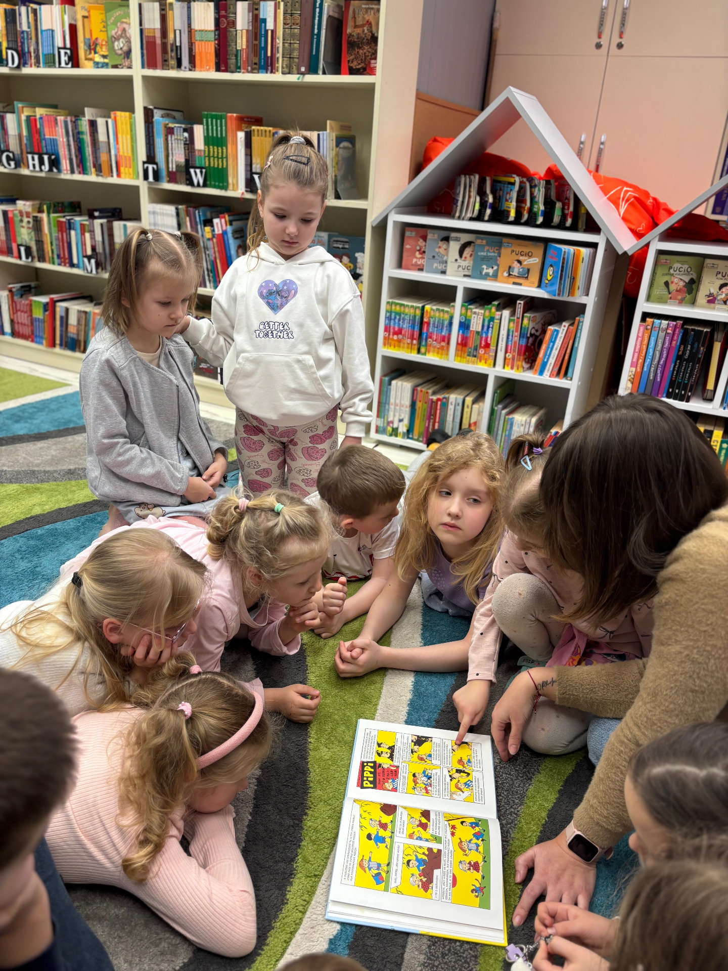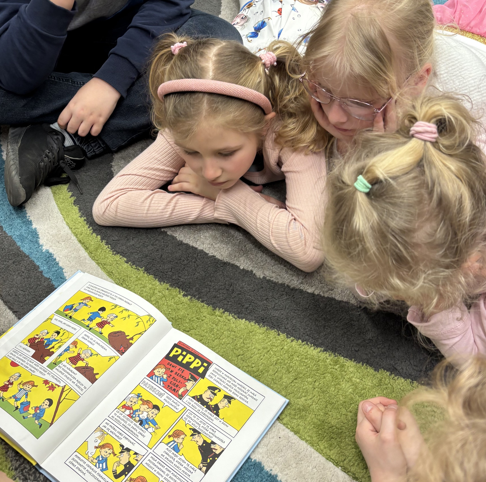 W miniony piątek odbyło się kolejne spotkanie Dyskusyjnego Klubu Książki dla Dzieci, które działa przy naszej bibliotece. Tematem rozmów była książka „Pippi się wprowadza oraz inne komiksy” autorstwa Astrid Lindgren – pełna humoru i niezwykłych przygód opowieść o Pippi Langstrumpf, dziewczynce, która zaskakuje wszystkich swoją odwagą, pomysłowością i zupełnie nietypowym podejściem do życia. Dzieci uważnie słuchały fragmentów książki, a następnie dzieliły się wrażeniami z lektury.