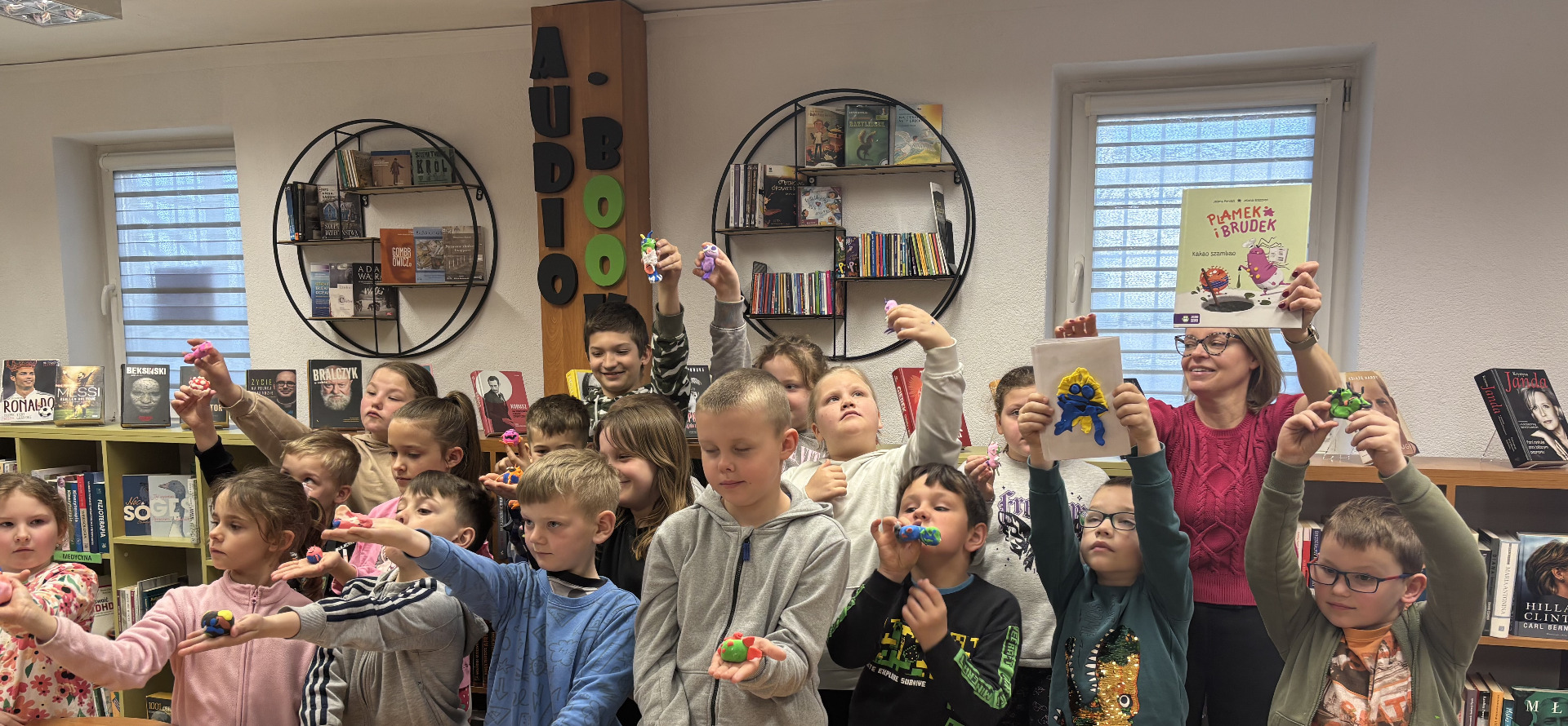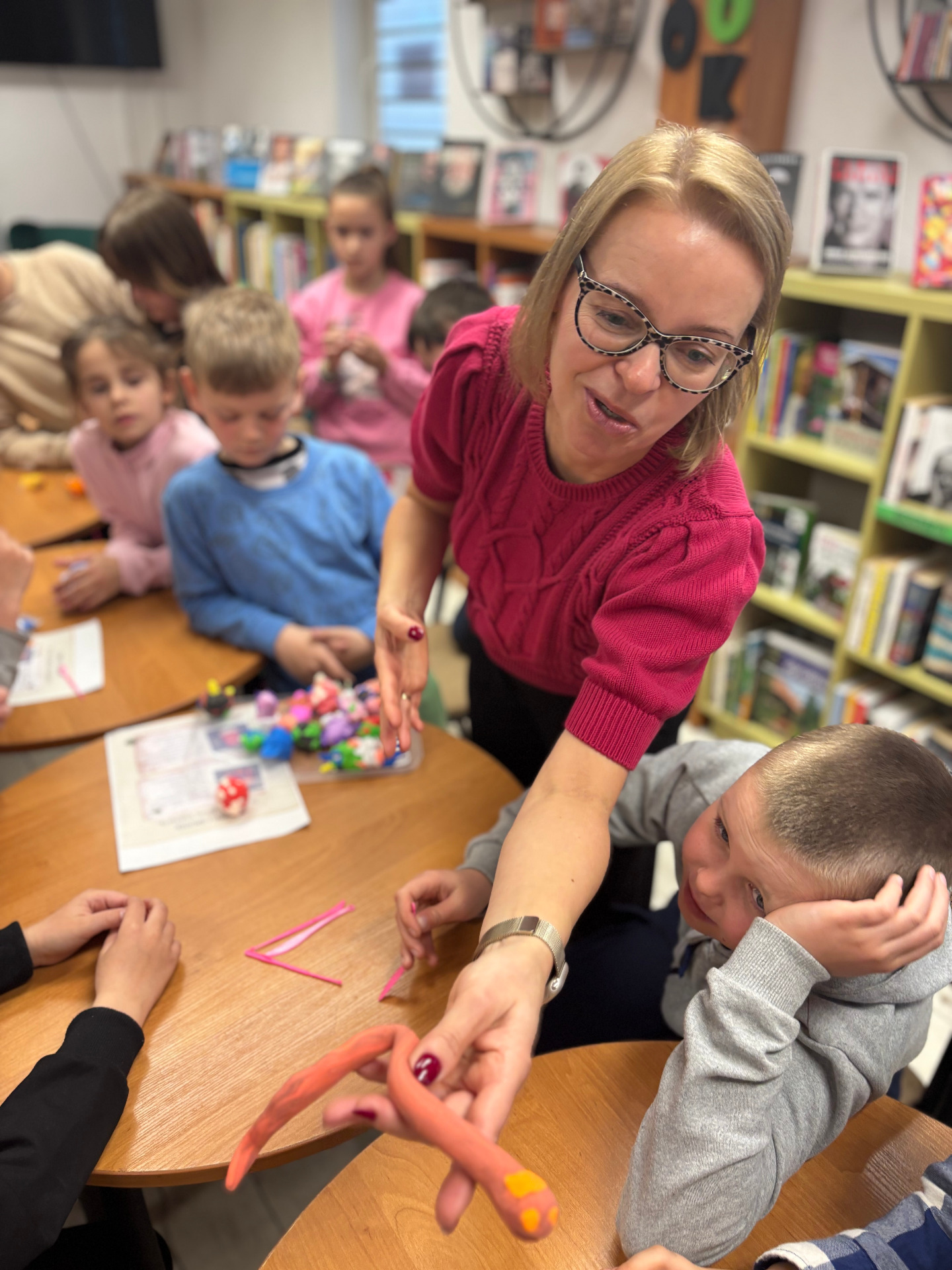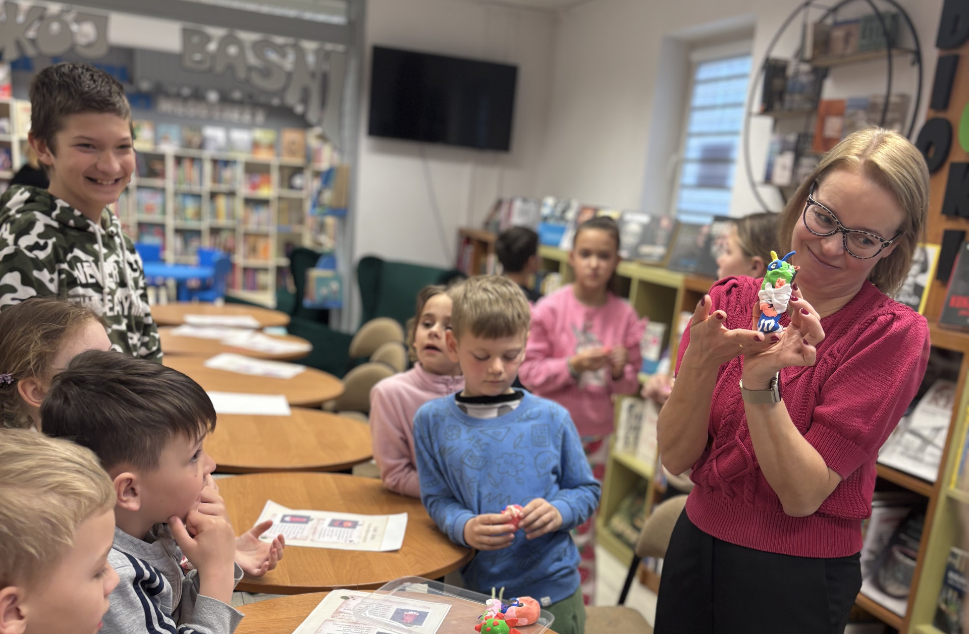 W naszej bibliotece odbyło się fantastyczne spotkanie, które prowadziła pani Joanna Witkowska z Miejskiej Biblioteki Publicznej w Darłowie. W spotkaniu uczestniczyli uczniowie klas I-III z Zespołu Szkół w Korlinie. Dzieci miały okazję poznać niezwykłe książki z serii Plamek i Brudek autorstwa Jeleny Pervan . Bohaterami opowieści były dwie złośliwe bakterie, które uwielbiają wszystko, co smrodliwe, paskudne i glutaśne. Ich celem jest zbliżenie się do dzieci, które zaniedbują higienę – nie myją rąk ani zębów, nie czeszą włosów, nie lubią zmieniać skarpetek. Książka, będąca nie tylko zabawną, ale i edukacyjną opowieścią, skutecznie uczyła dzieci, jak wielkie znaczenie ma codzienna troska o czystość i higienę osobistą.
