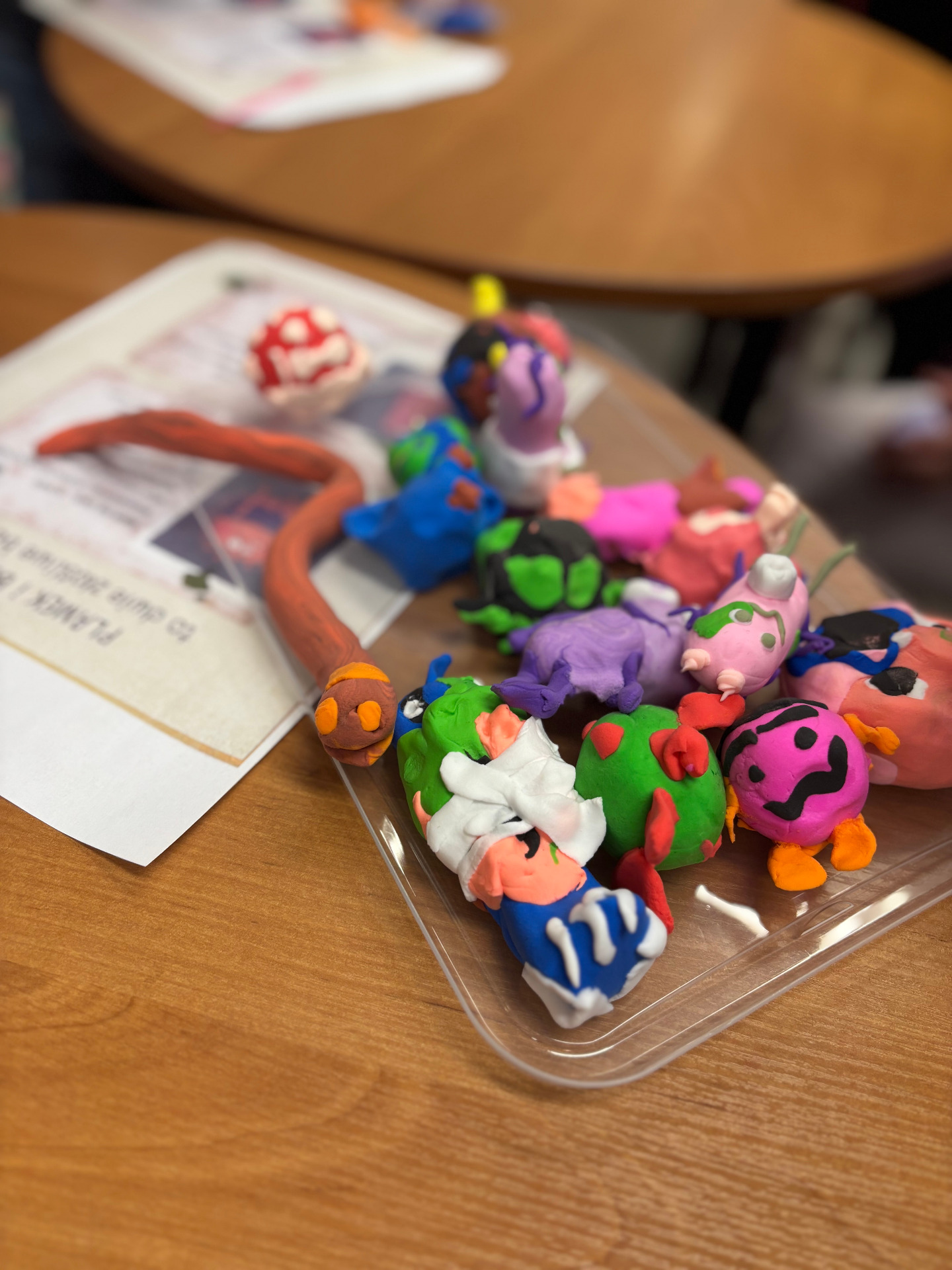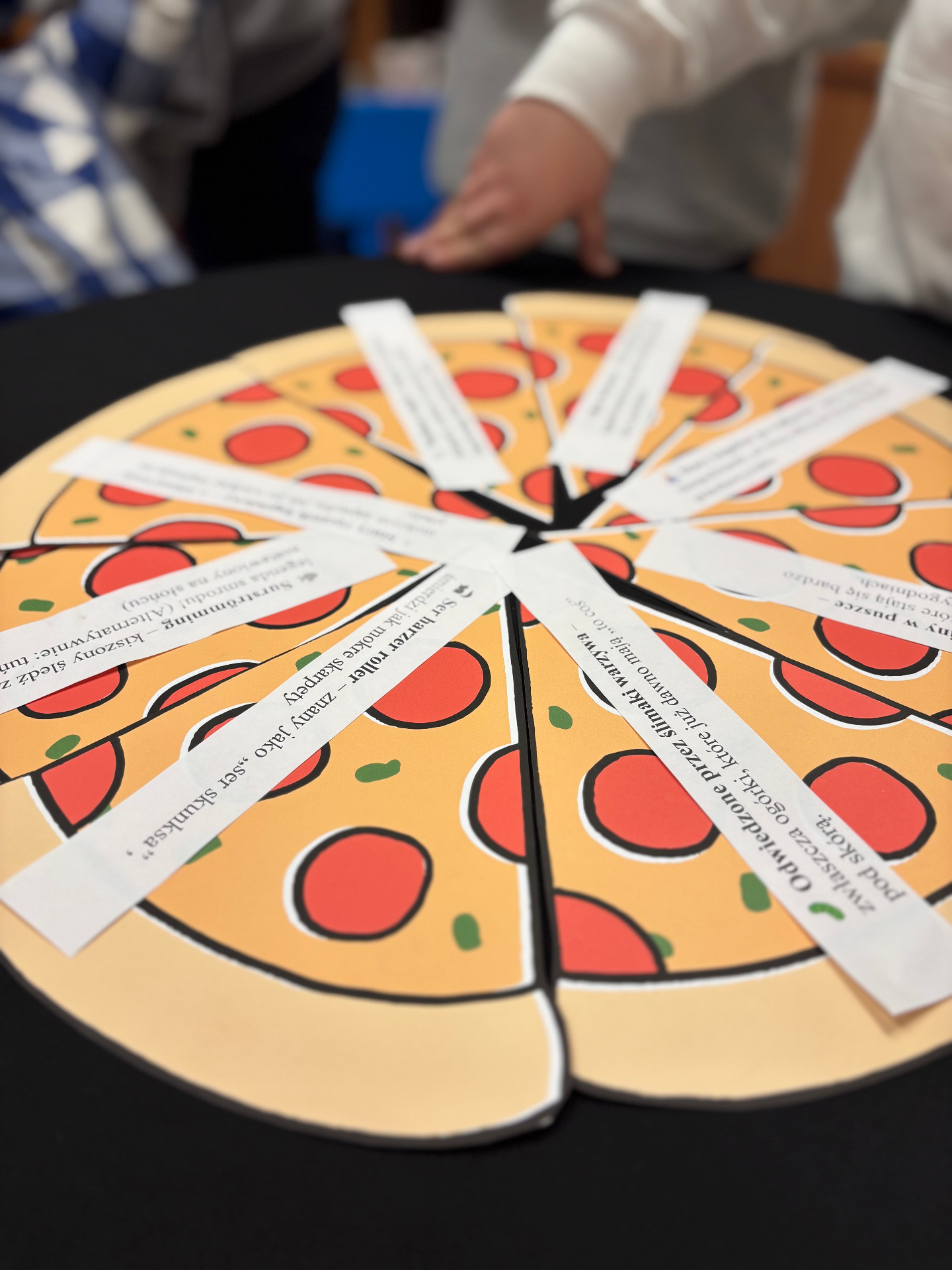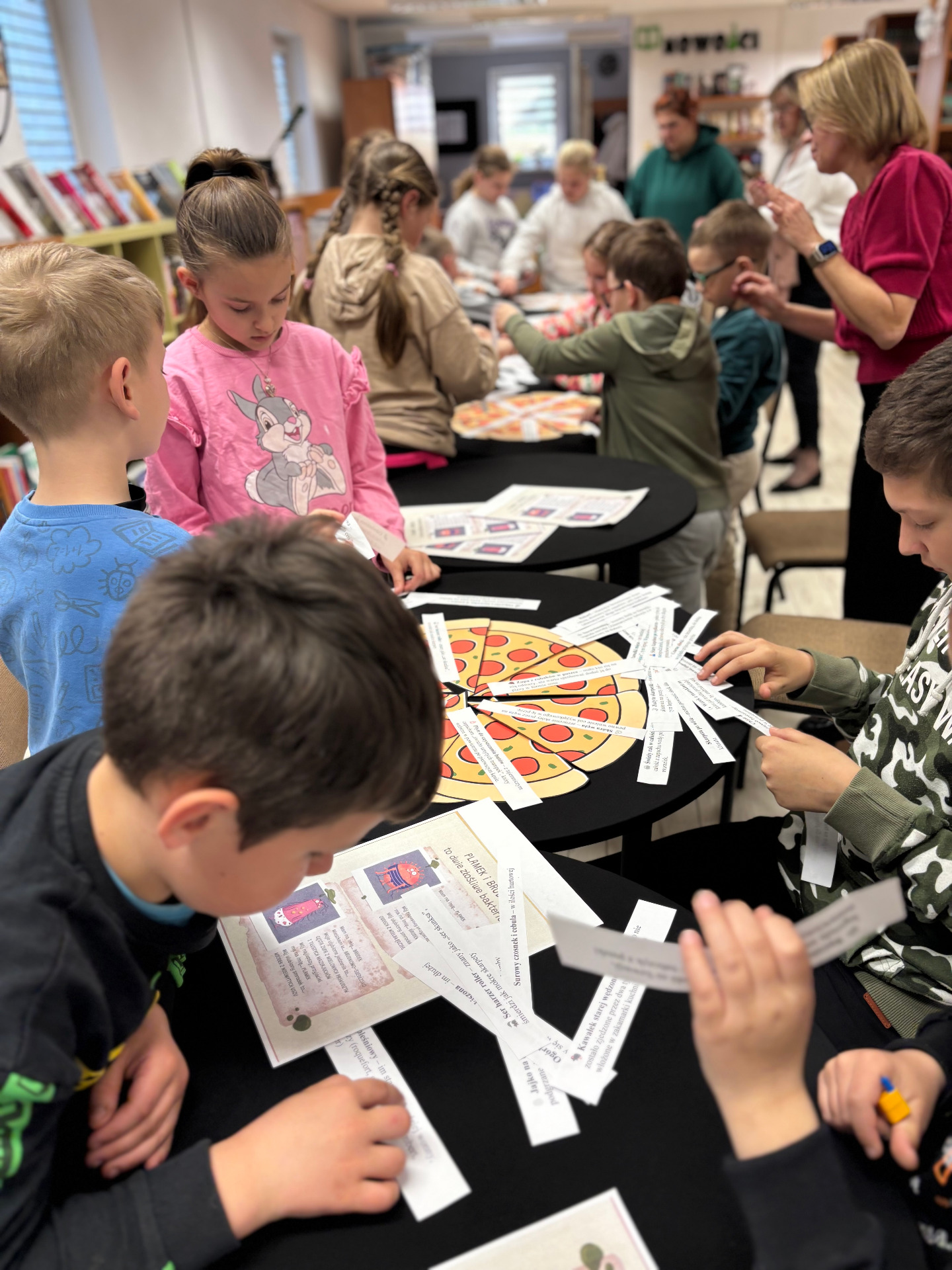 Podczas spotkania oprócz śmiesznych opowieści dzieci wzięły udział w ciekawym eksperymencie z pieprzem, zdobiły pizzę z nieoczywistymi składnikami i tworzyły bakterie z piankoliny.