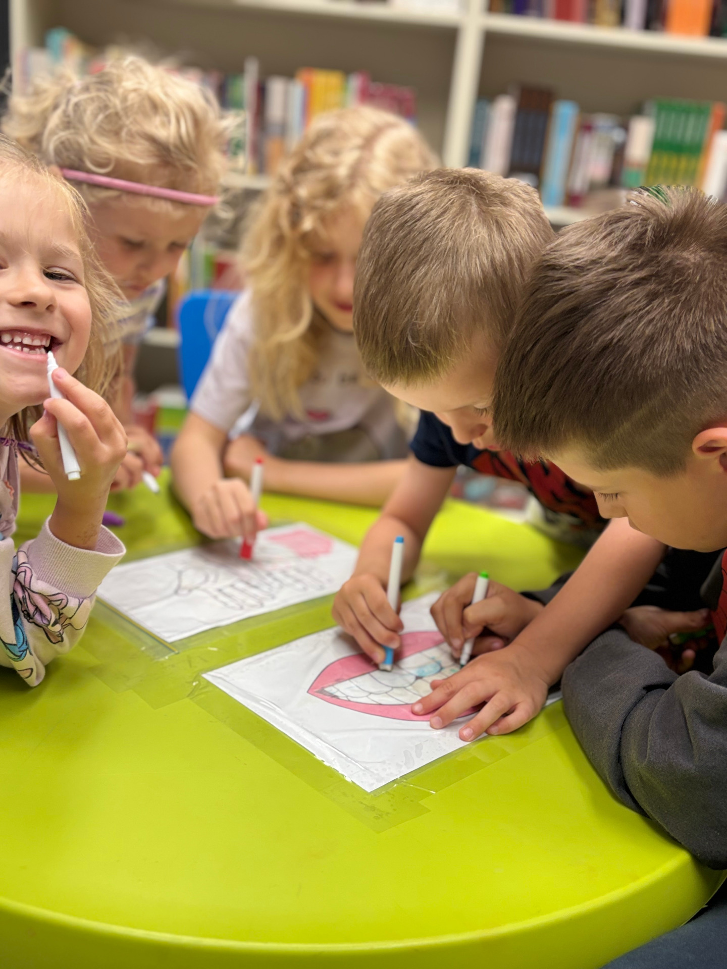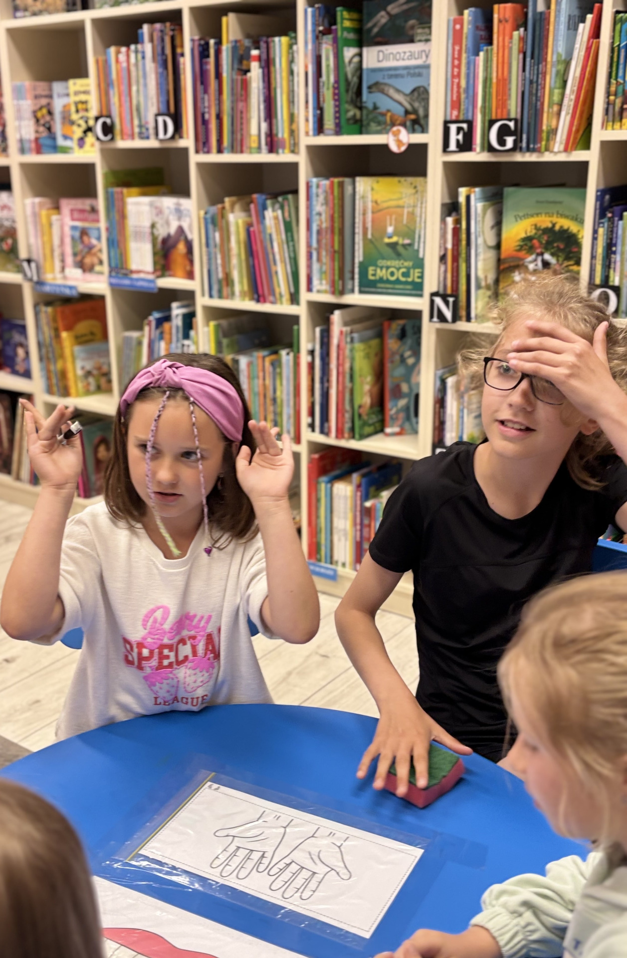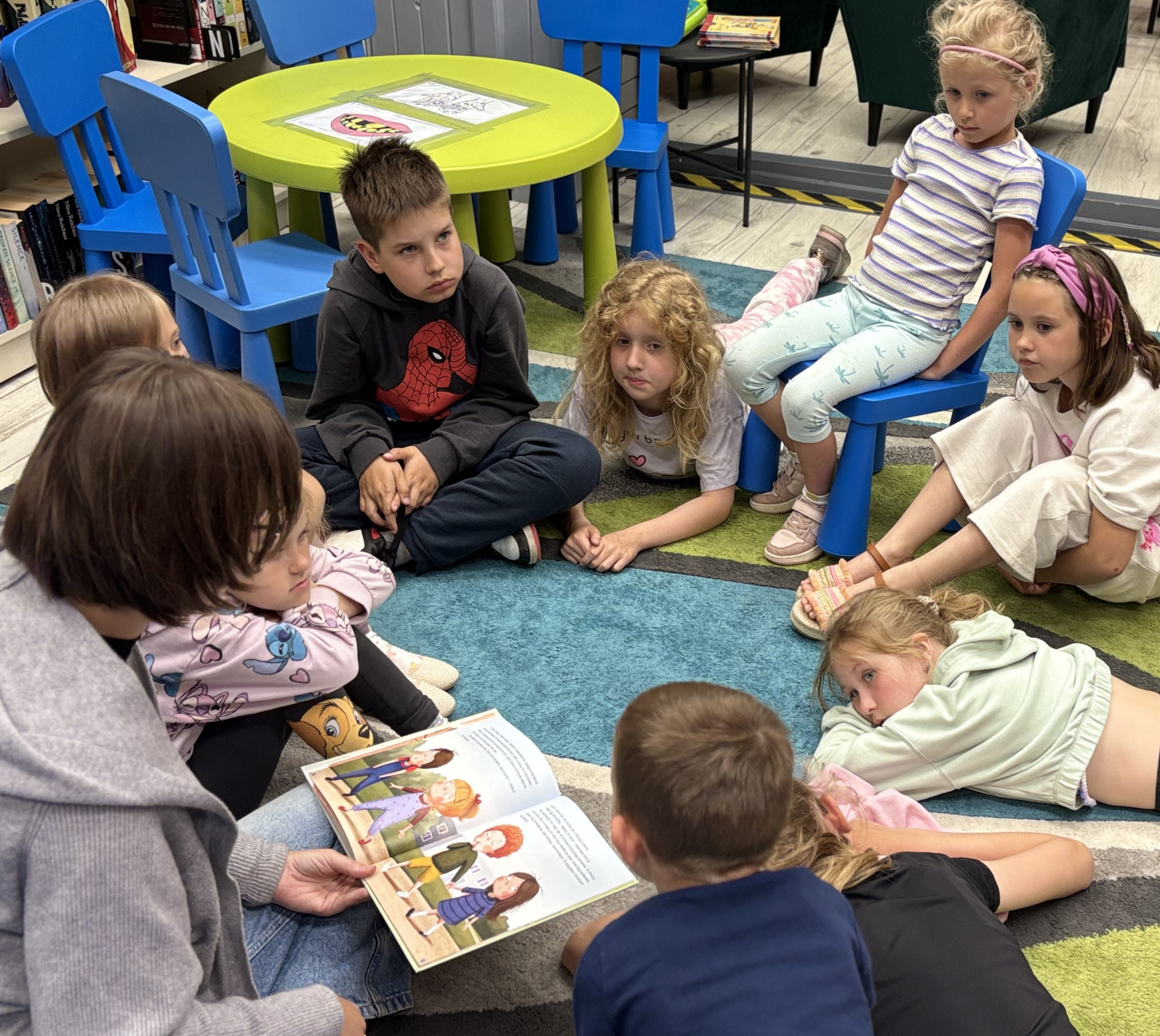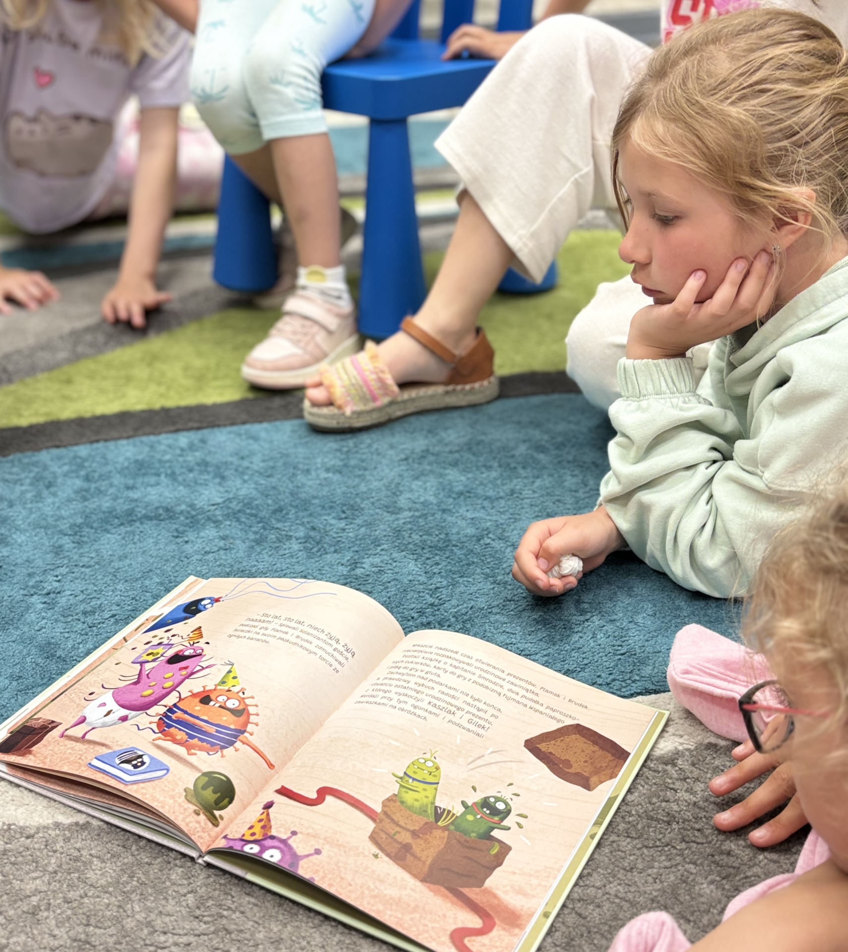 W naszej bibliotece odbyło się ostatnie przed wakacjami spotkanie w ramach Dyskusyjnego Klubu Książki dla Dzieci – tym razem nie zabrakło... brudu, śmiechu i odrobiny nauki! Czytaliśmy przezabawną książkę serii Plamek i Brudek pt. „Kakao Szambao brudaśne urodziny” autorstwa J. Pervan. Plamek i Brudek to obrzydliwie przezabawna seria, która uświadomi najmłodszym, że przyjaźń z bakteriami to nic dobrego. Historie pełne błota, plam i szalonych przygód okazały się świetnym pretekstem do rozmów o higienie, ale też do... eksperymentowania z brudem! Dzieci miały okazję pobawić się w małych naukowców, tworząc własne „brudne mikstury”. Było wesoło, kreatywnie i naukowo.