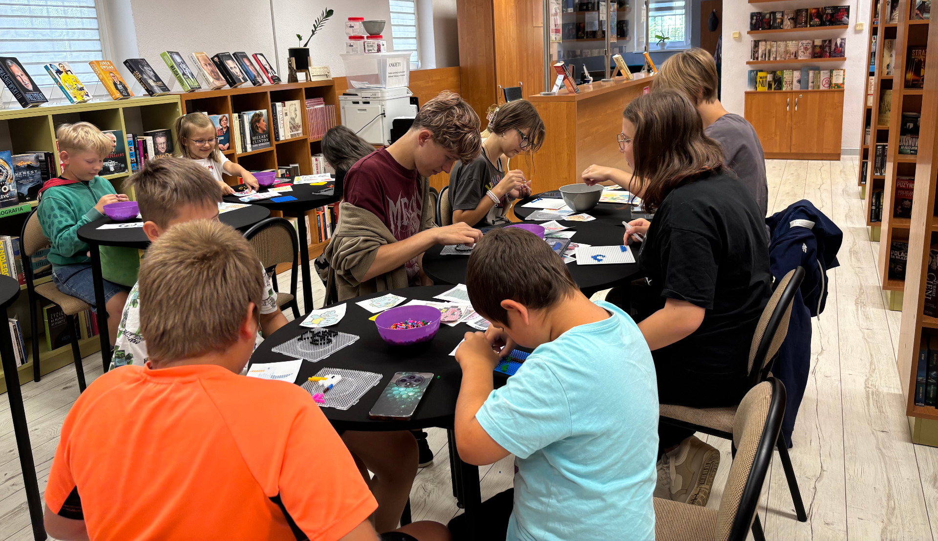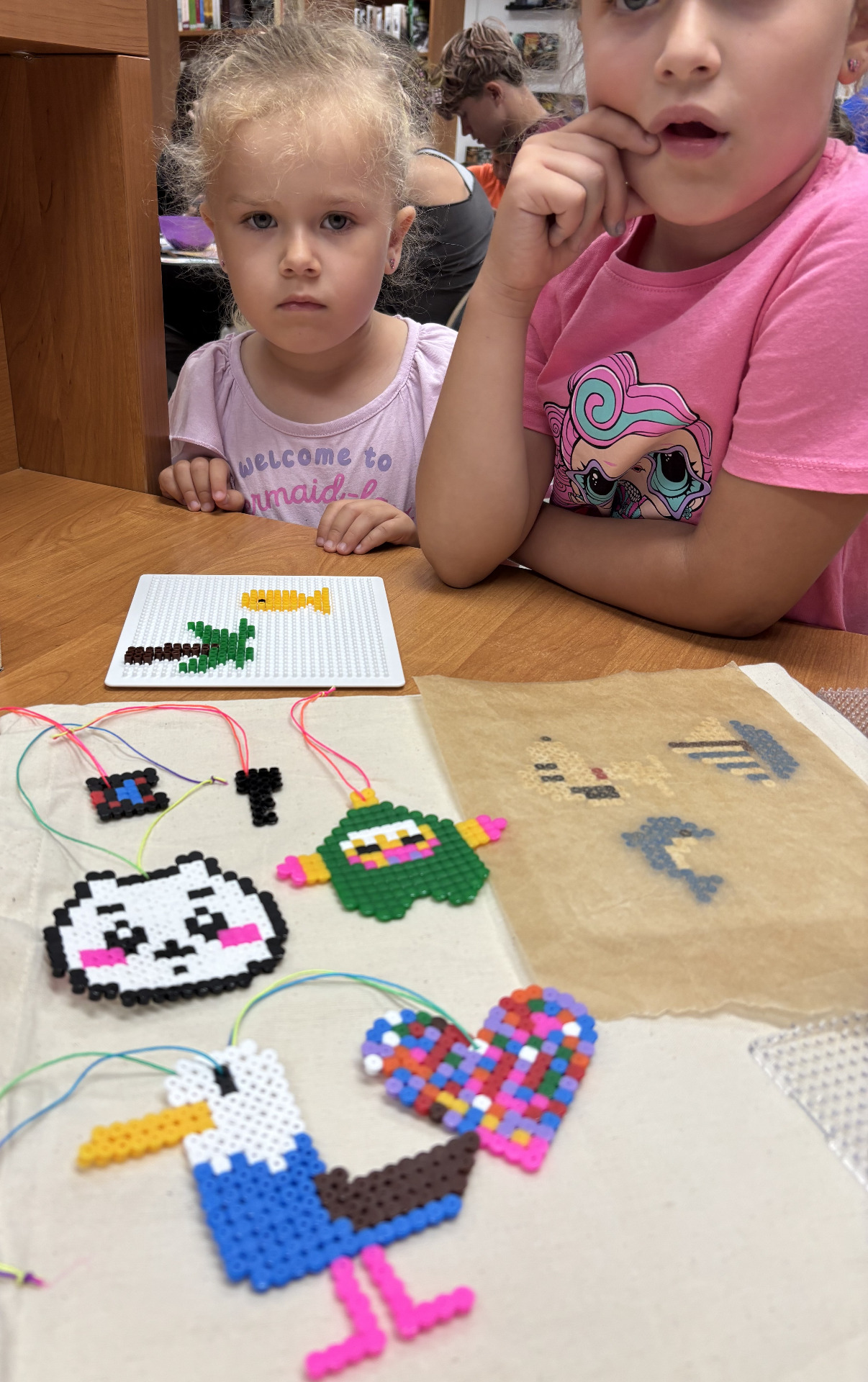 Za nami kolejne kreatywne spotkanie w ramach wakacyjnych zajęć w naszej bibliotece. Tym razem dzieci miały okazję puścić wodze wyobraźni podczas warsztatów "Koralikowe Lato". Zachwycały nas swoją pomysłowością i precyzją wykonania, tworzyły niezwykłe zawieszki z kolorowych koralików w klimacie morskim, wakacyjnym. Było twórczo, radośnie i bardzo kolorowo!