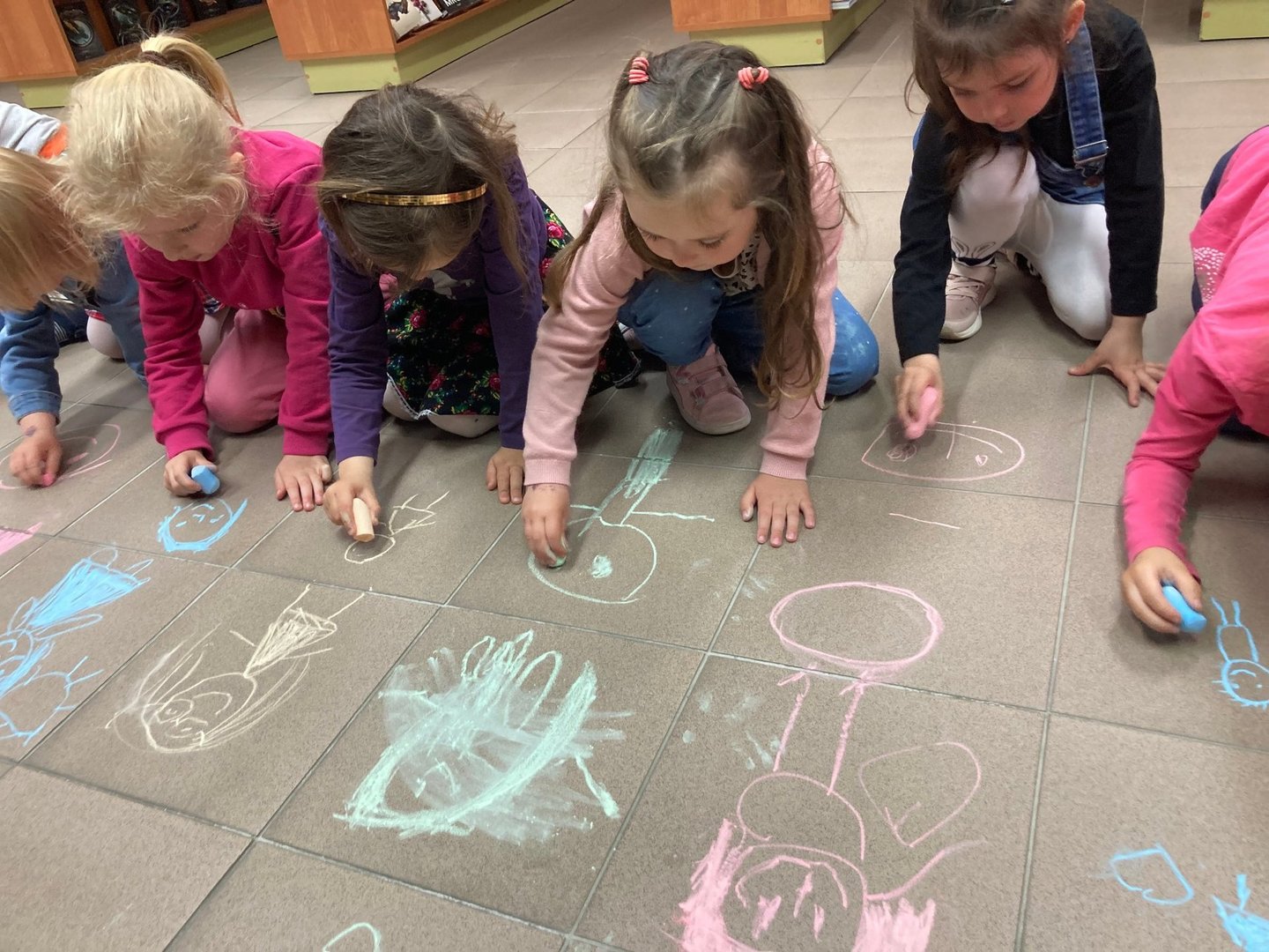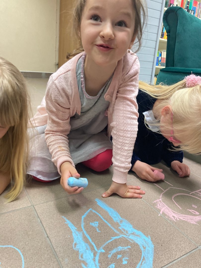 Z okazji "Dnia Mamy" przedszkolaki stworzyły w bibliotece portrety Ukochanych Mam.